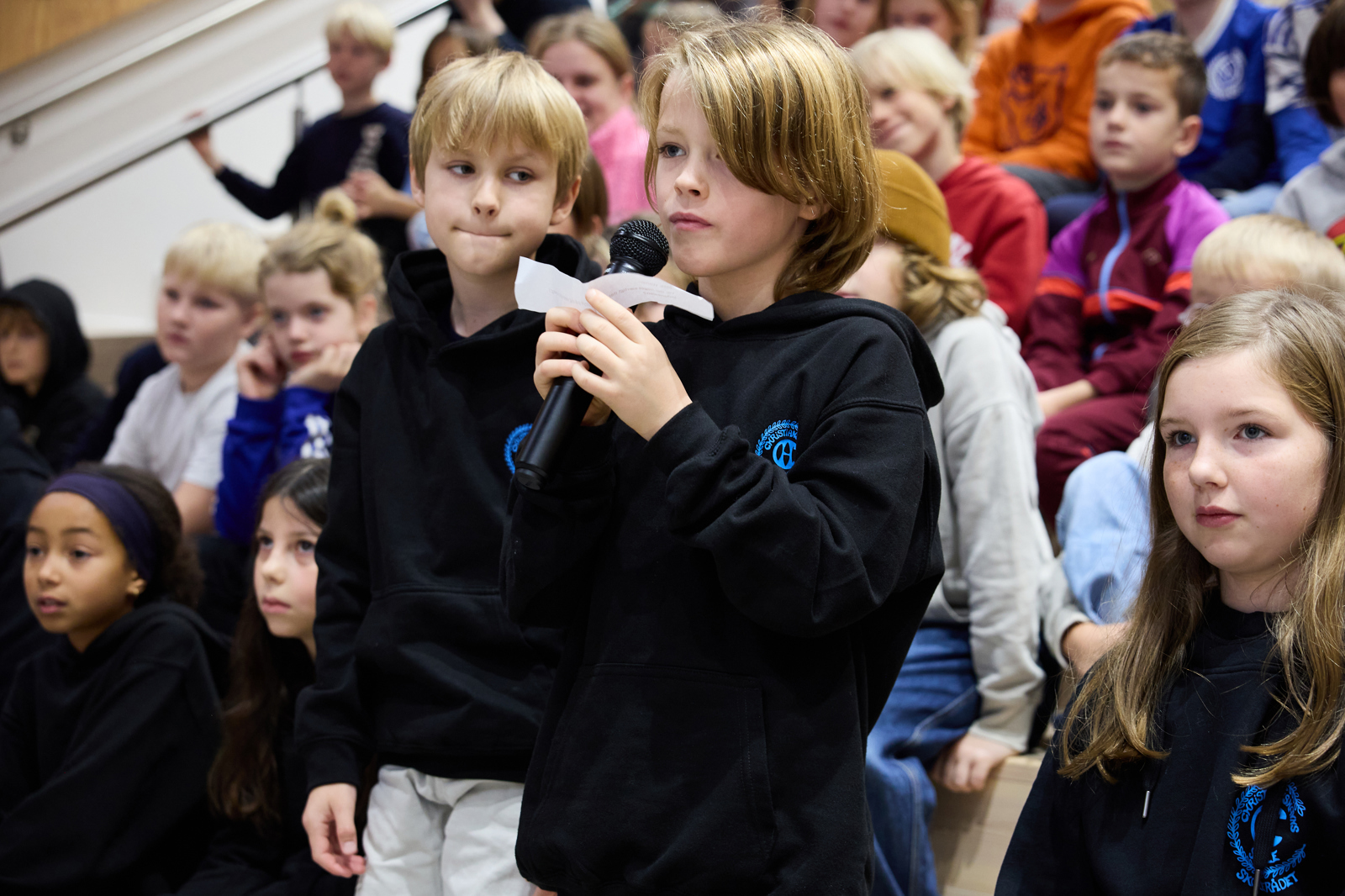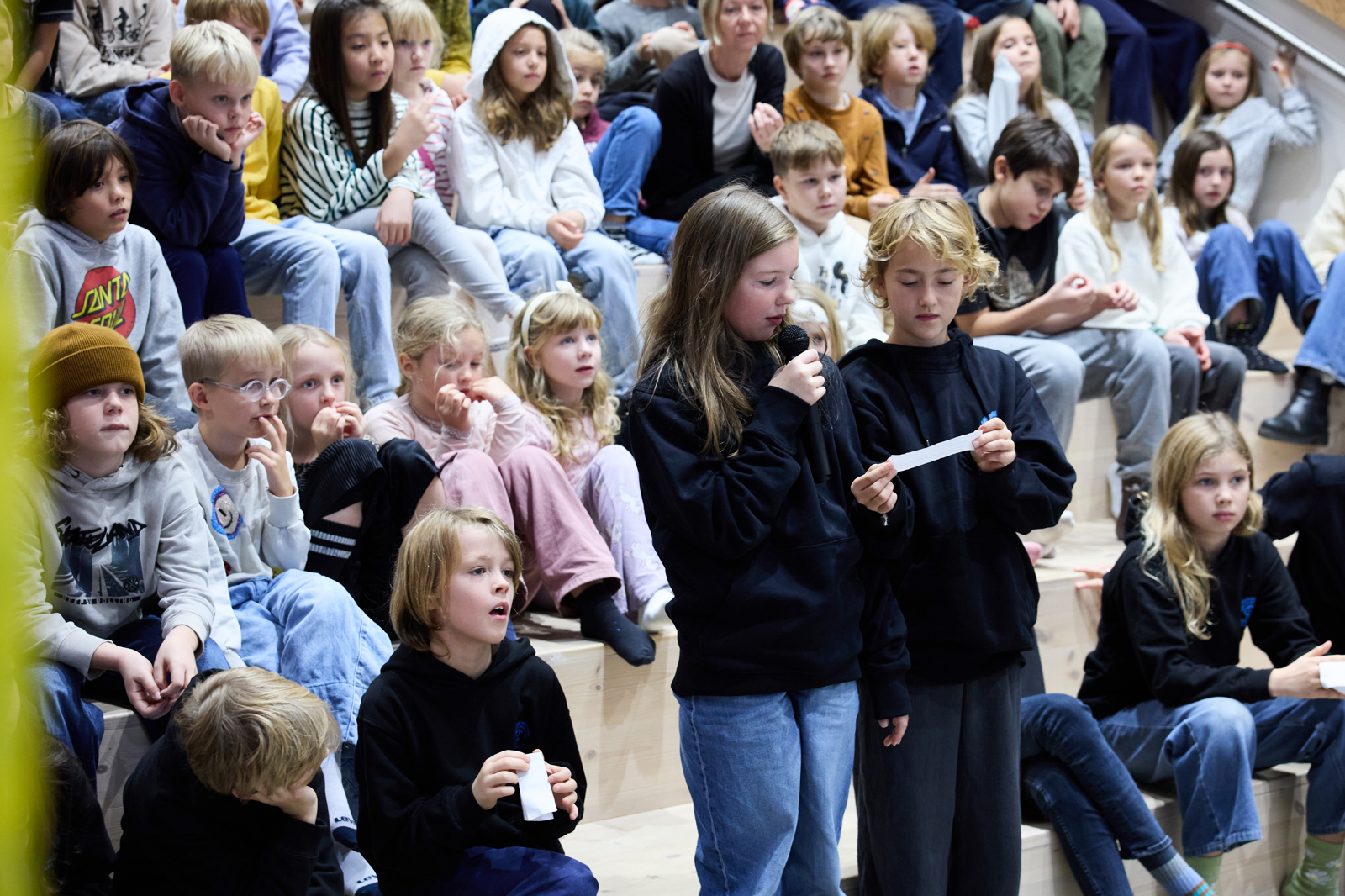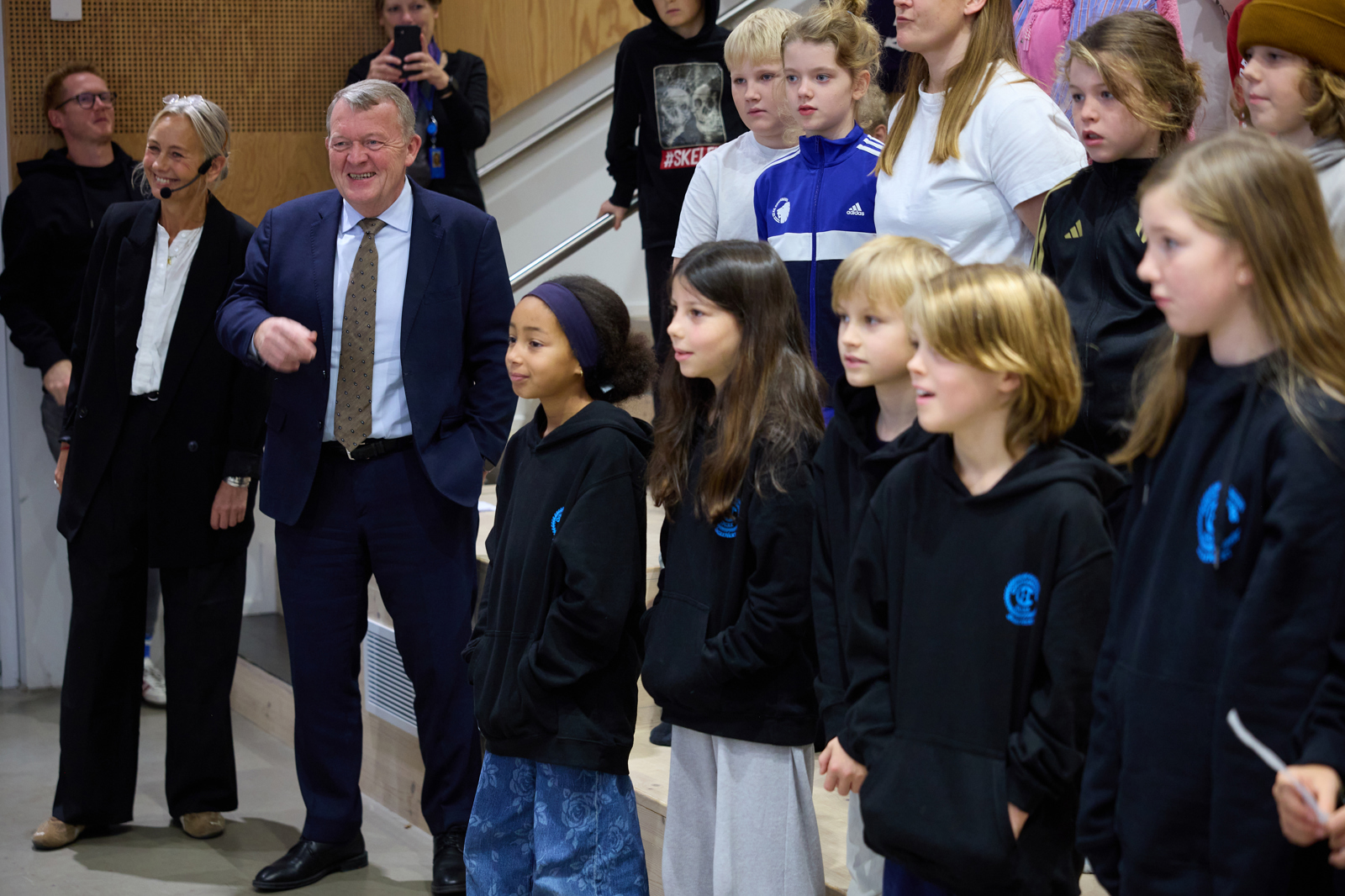 Skolerådsrepræsentanterne fra 3. og 4. årgang var virkeligt seje og modige, og stilte sig velvilligt op foran alle elever, voksne og kameraer for at tale med udenrigsministeren på vegne af skolen. Et stort tak til dem, til 4. årgang for at vinde lodtrækningen, og til alle voksne og elever fra årgangene, som var med til at gøre det til en speciel oplevelse.